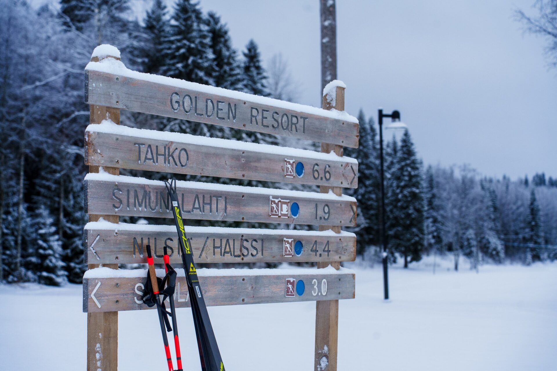 Golden Resort sijaitsee aivan Tahkon laajan latuverkoston äärellä. Yli 65 kilometriä hoidettuja latuja tarjoaa vaihtoehtoja niin perinteiseen kuin vapaaseen hiihtoon. Reitit kulkevat metsien ja järvimaisemien halki – suoraan majoitusalueen vierestä.